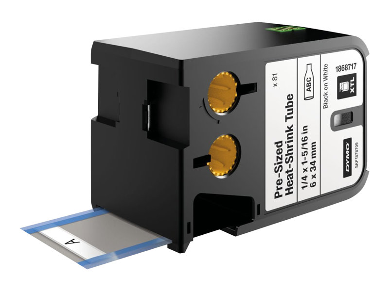 DYMO XTL HEATSHRINK-81ct BLACK/WHT 1/4" x 1-5/16"